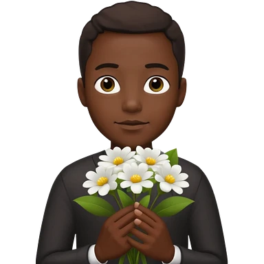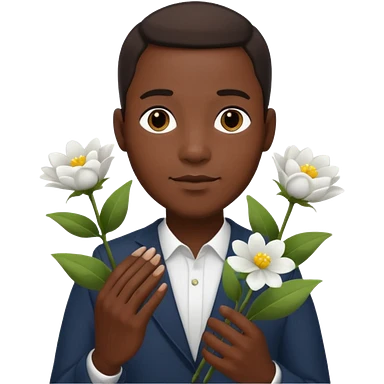 black man holding white flowers in their hands emoji