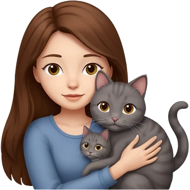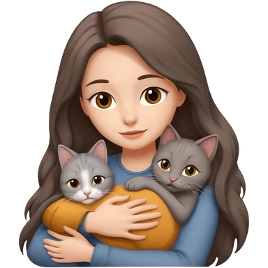 woman hug a gray cat, brown long hair emoji | AI Emoji Generator