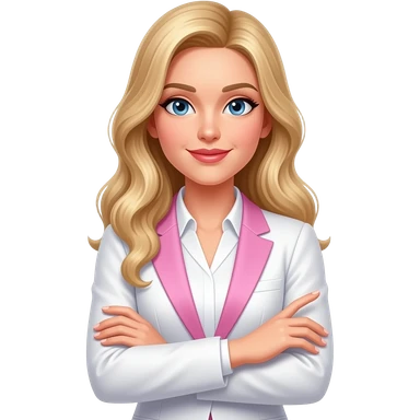 Blonde woman with blue eyes and large breasts, wearing a business suit with a bold neckline. Confident and cold. Foreign Trade Manager with a laptop or documents in hand. Smart, sexy, in control. emoji