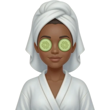 woman in a robe with hair in a towel and cucumber slices on her eyes emoji | AI Emoji Generator