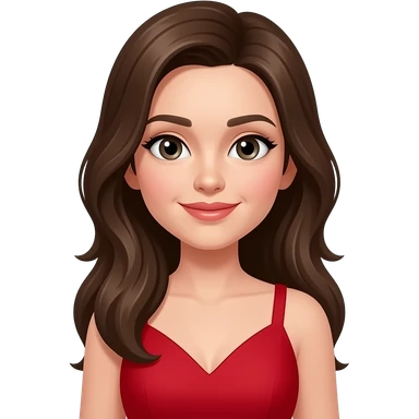dark red hair woman in red dress flirting emoji
