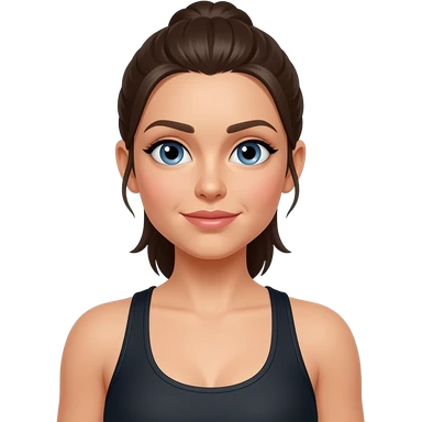 beautiful woman with dark long straight hair and brown eyes in a gym emoji