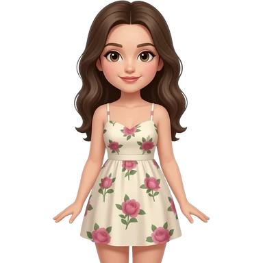 Beautiful Asian girl with long black hair and body tattoos wearing a floral sundress emoji