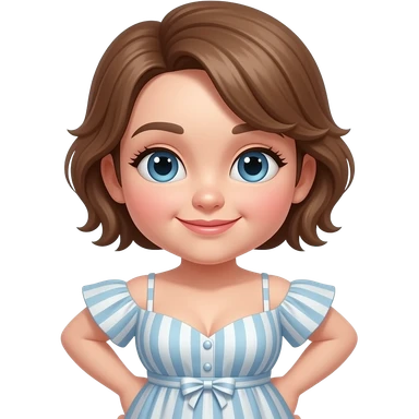 full length anime plus size girl in a blue sundress, glasses with big hazel eyes and white skin and curly black long hair and aristocratic high cheekbones emoji