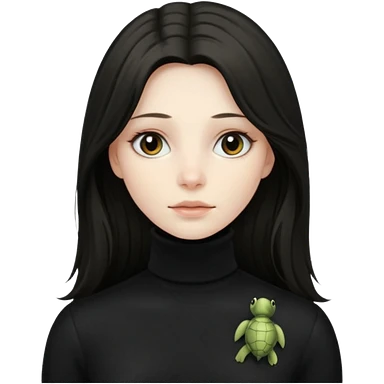Beautiful woman with intense botched plastic surgery in turtleneck emoji