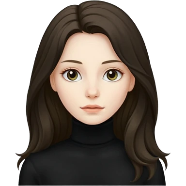 White woman with brown hair in bun wearing a turtleneck that is white emoji