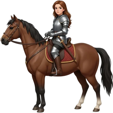 woman knight black hair riding horse emoji | AI Emoji Generator
