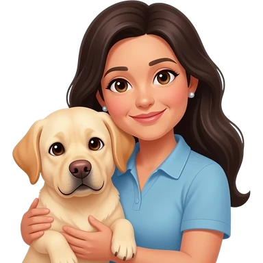 woman, middle aged, long dark hair, small earrings, brown eyes, cuddling labrador emoji