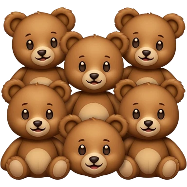 Group of identical brown teddy bear emojis, but one or two have different shaped ears or holding a small object” emoji