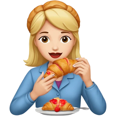 woman eating croissant emoji