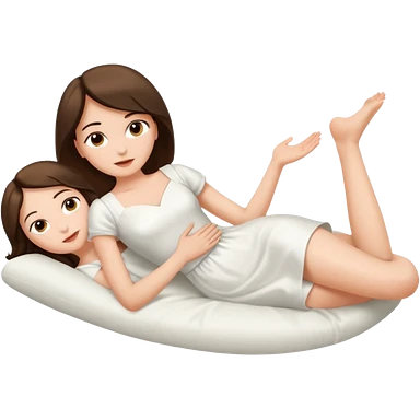 two women lying on top of each other wrapped around each other lying down both brunette emoji