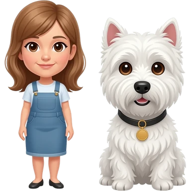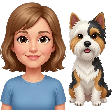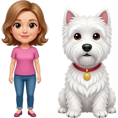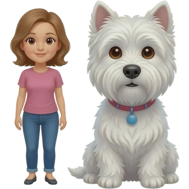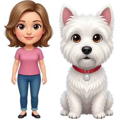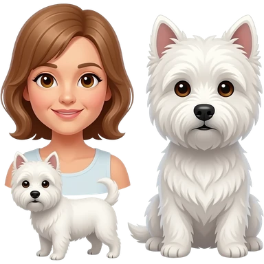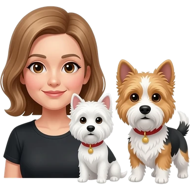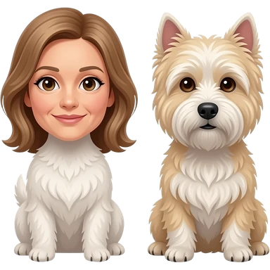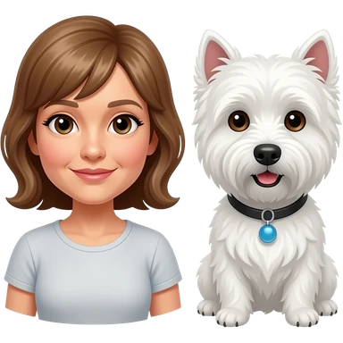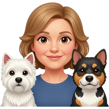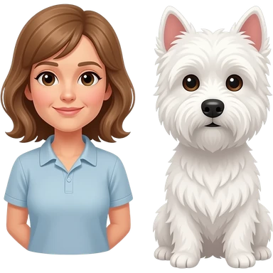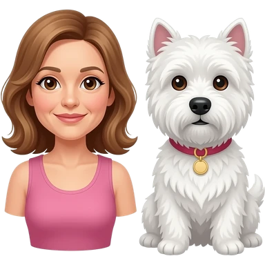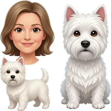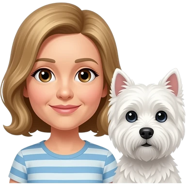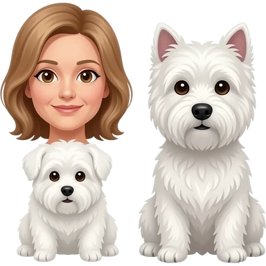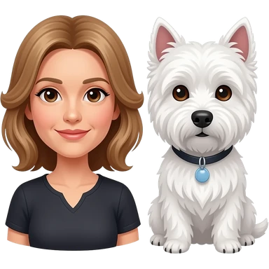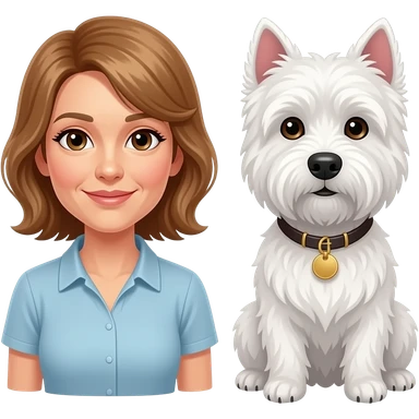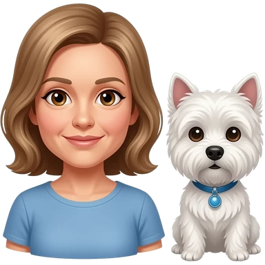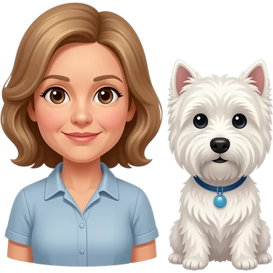 Woman midle age light brown medium length hair, with a male and a female westie emoji | AI Emoji Generator