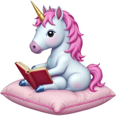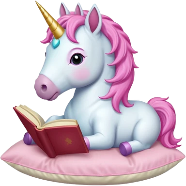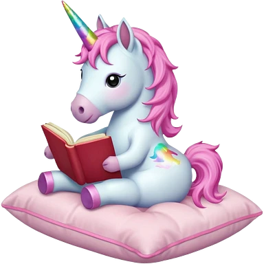 Unicorns read book A tiny pastel unicorn sitting on a cushion, reading a glowing storybook. emoji
