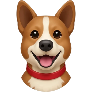 Head and shoulders of an all red Australian cattle dog with white Bentley mwith red neck and chin. happy open mouth and pointy ears emoji