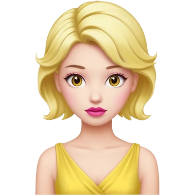 woman Pink lips, deifferent hair, yellow dress. emoji | AI Emoji Generator