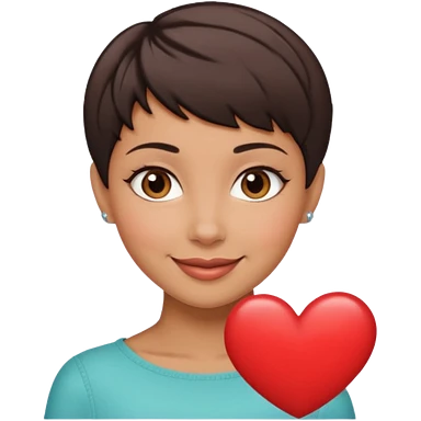 woman pixie cut dark brown hair, hispanic, brown oval eyes, heart shaped face emoji
