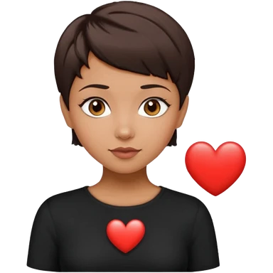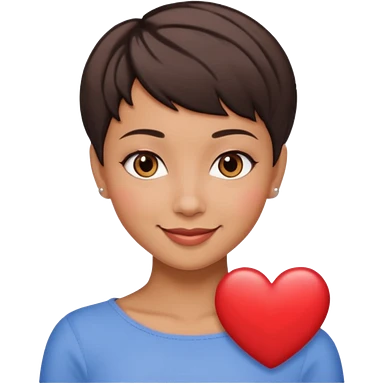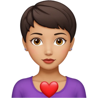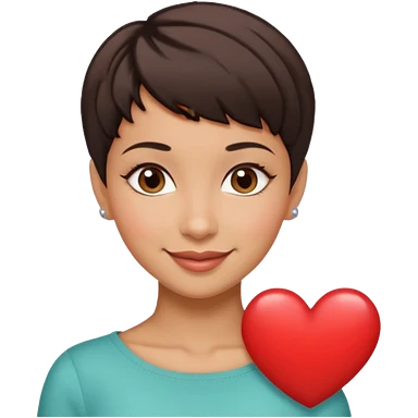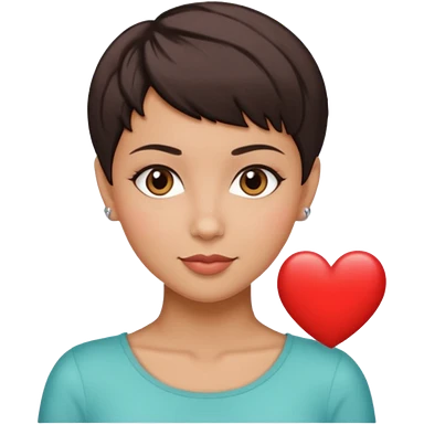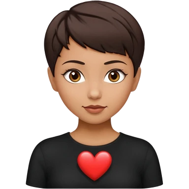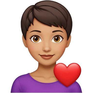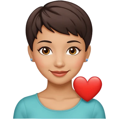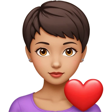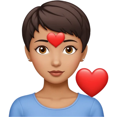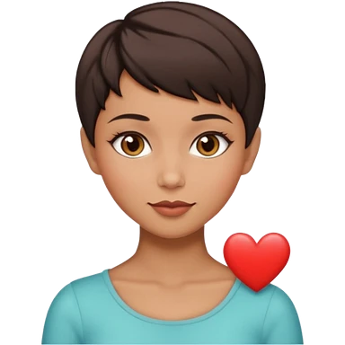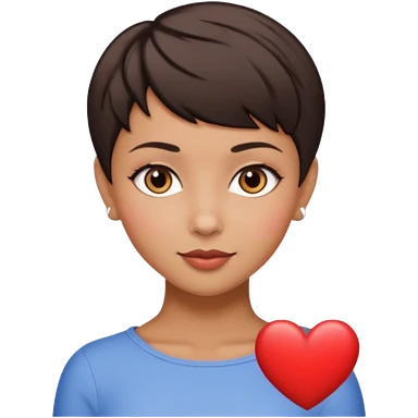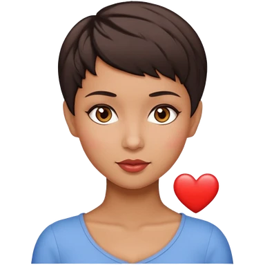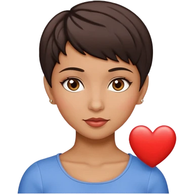 woman pixie cut dark brown hair, tan skin, brown eyes, heart shaped face emoji