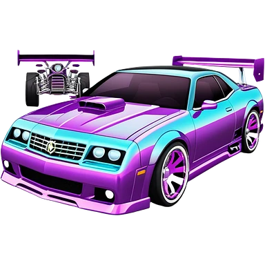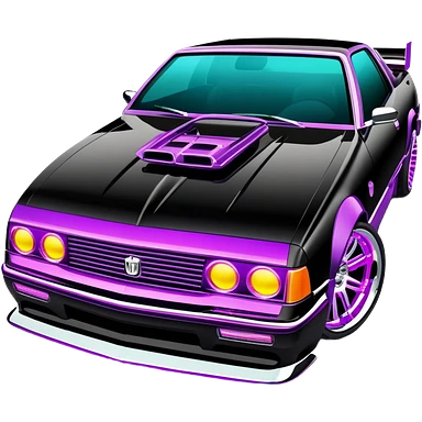 Extravagant luxury car tuned by MTV's Pimp My Ride crew, featuring neon lights under the chassis, nitro parts and chrome rims emoji