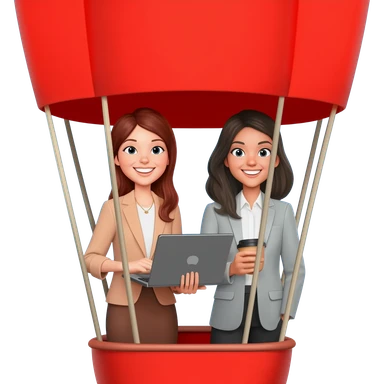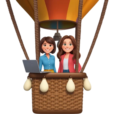 two female startup founders in a hot air balloon you can see the whole hot air balloon emoji