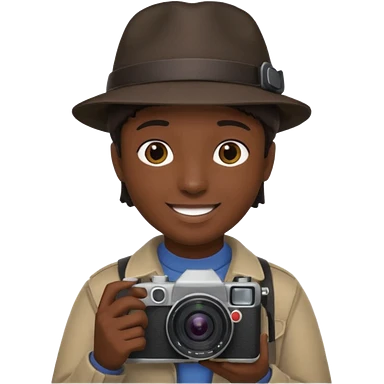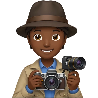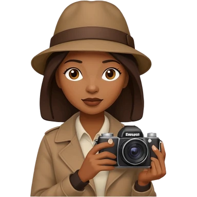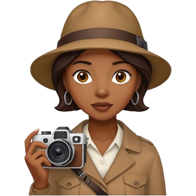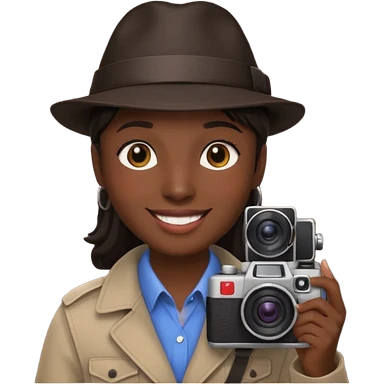 woman photographer with long brunette hair hot pink polo shirt and camera emoji