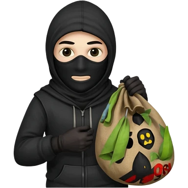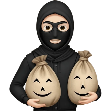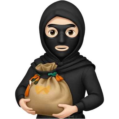 woman thief full body with a sack full of money, caucasian, mask on to cover eyes emoji | AI Emoji Generator
