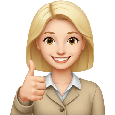 thumbs up emoji light skinned woman green eyes encouraging teacher beige top emoji