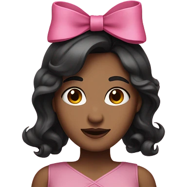 an adult woman with dark hair and pink bow on it, while tipping emoji
