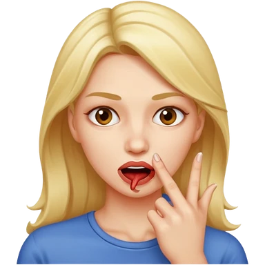blonde woman with straight hair with her finger horizontal under her nose emoji
