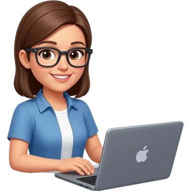 woman with dirty blond highlighted hair, tortise shell glasses, pink lips, and blue eyes emoji