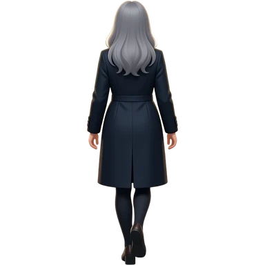 woman with long gray hair from the back as she walks out emoji