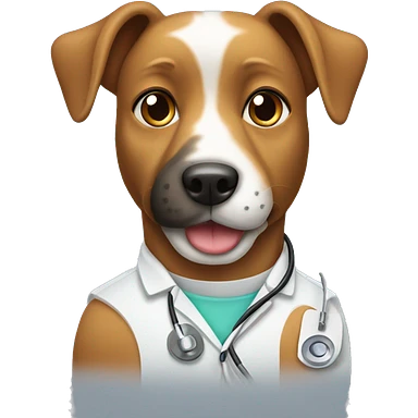 Veterinary doctor white woman with long brown wavy hair and brown eyes, wearing a white coat , a pink stethoscope around neck and standing next to a solid black colored chihuahua dog emoji