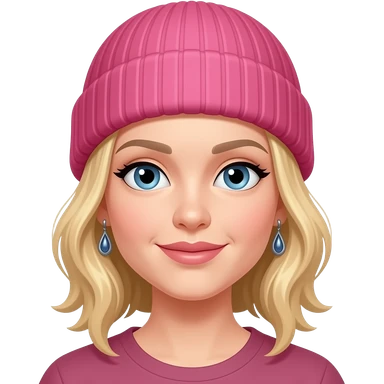 woman with blond hair and earrings and pink beanie emoji