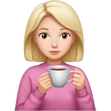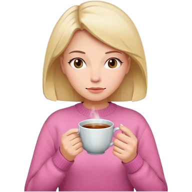 woman whith a pink sweat who is cold whith a cup of tea emoji | AI Emoji Generator