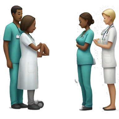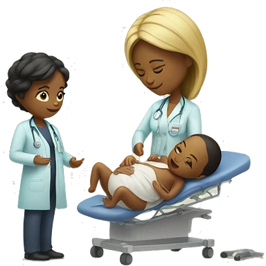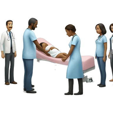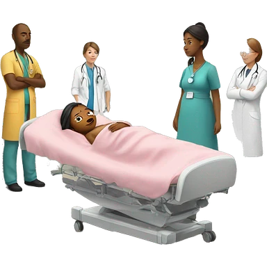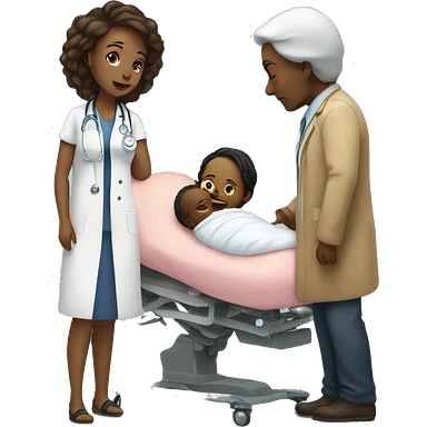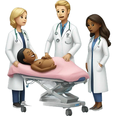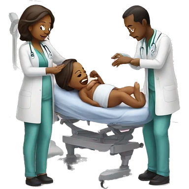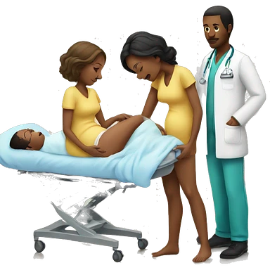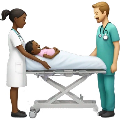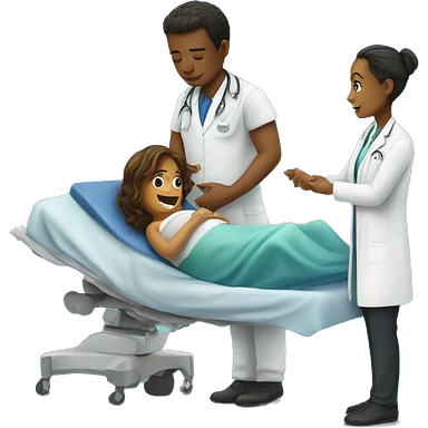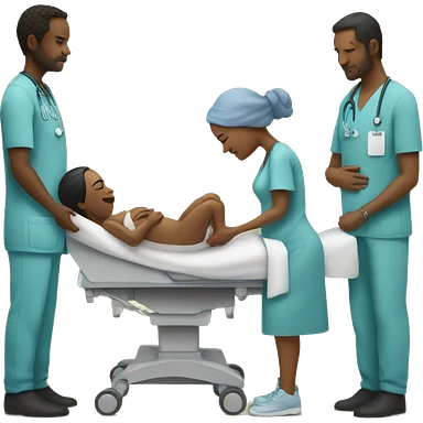 a woman gives birth and doctors stand nearby emoji