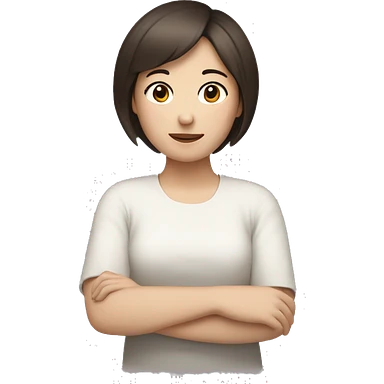 Brunette short haired women who is half white half Korean opening her arms to give someone a hug emoji