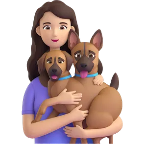 woman with long dark brown hair holding a Malinois dog in her arms emoji