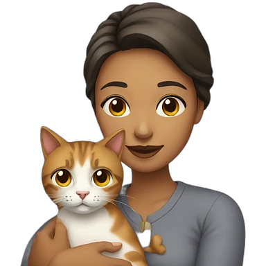 Woman with brown and gray long hair with a cat on her shoulder emoji