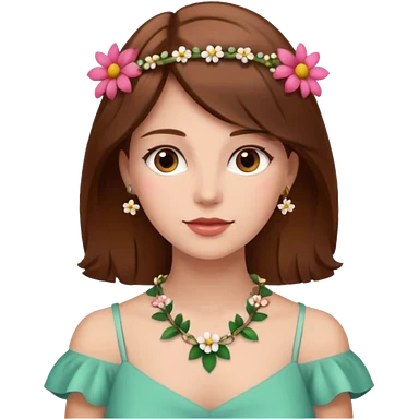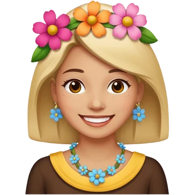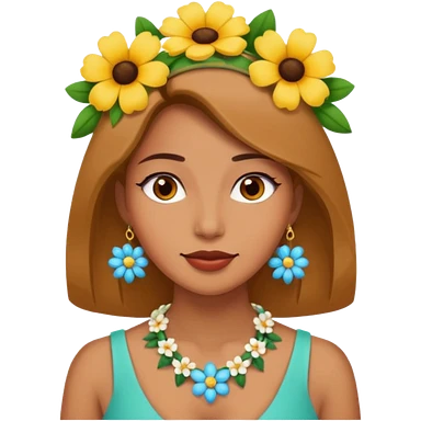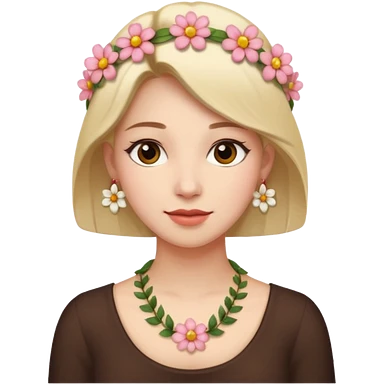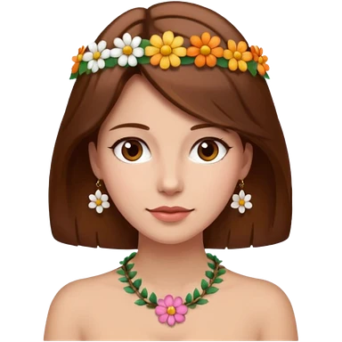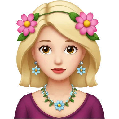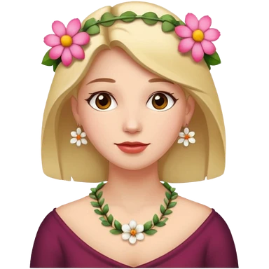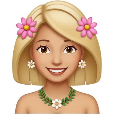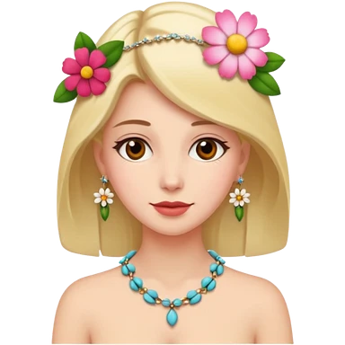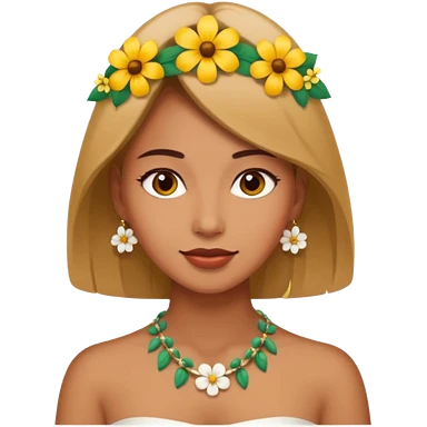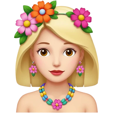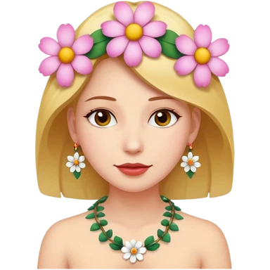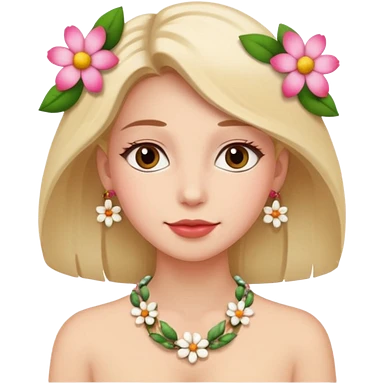 White bunny with short ears wearing a flower headband, flower necklace, and a flower bracelet emoji