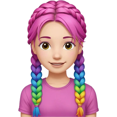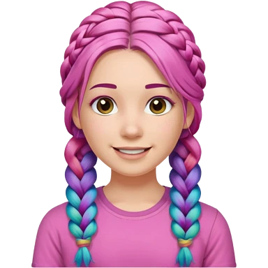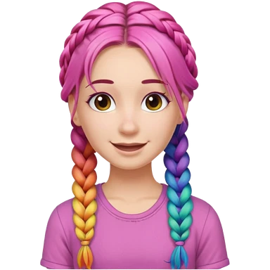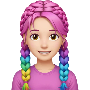 Woman with braided rainbow hair, happy — long braids, pink shirt emoji | AI Emoji Generator