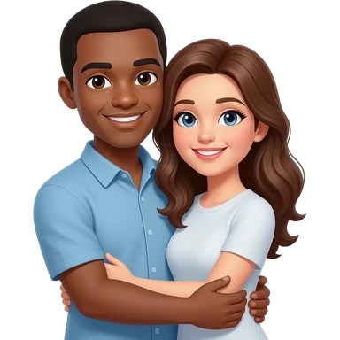 Dark skin black man and brown hair white woman cuddling emoji