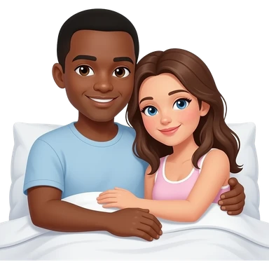 Short hair Dark skin black man and brown hair white woman cuddling in bed emoji