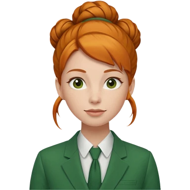woman with bun hair with black suit emoji | AI Emoji Generator