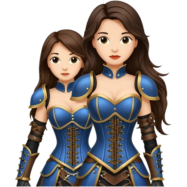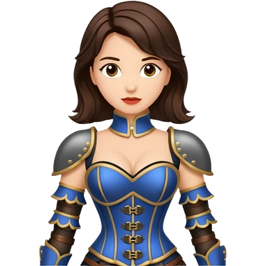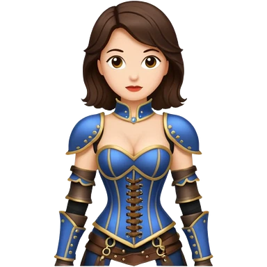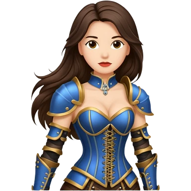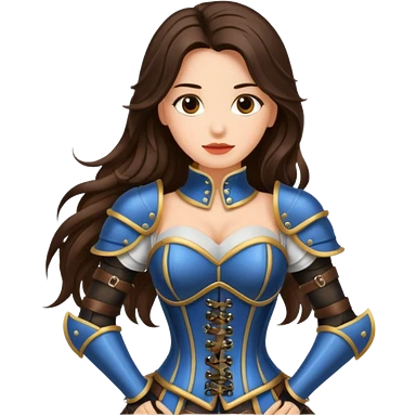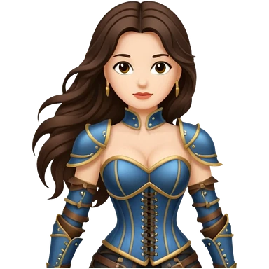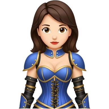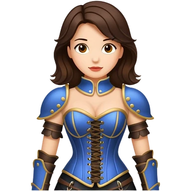 Woman with brown long wavy hair, light skin, pink corset, blush emoji