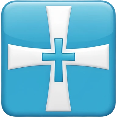 simple flat cyan blue square icon with a clean white greek cross like thsi: ☩ emoji