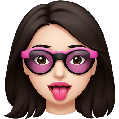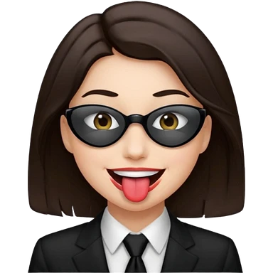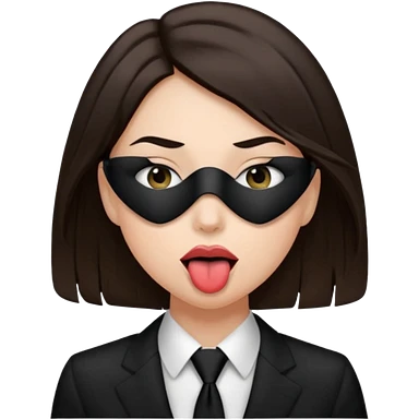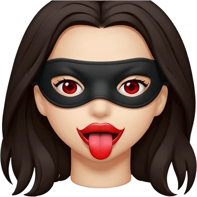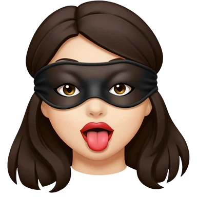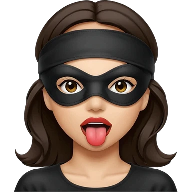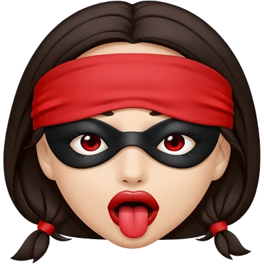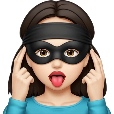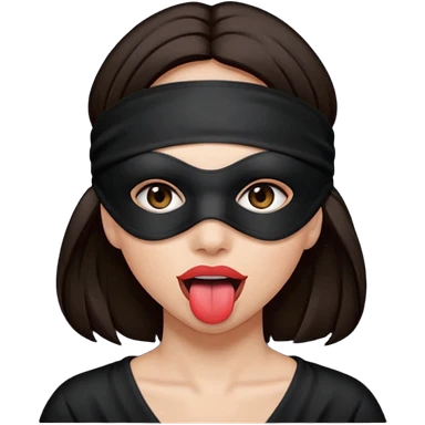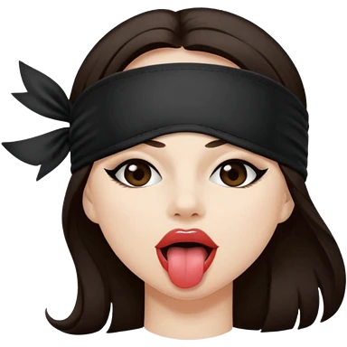 woman with dark brown hair wearing black blind fold completely covering her eyes. tongue out and saliva coming from mouth emoji | AI Emoji Generator