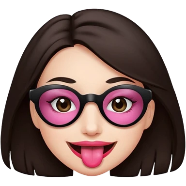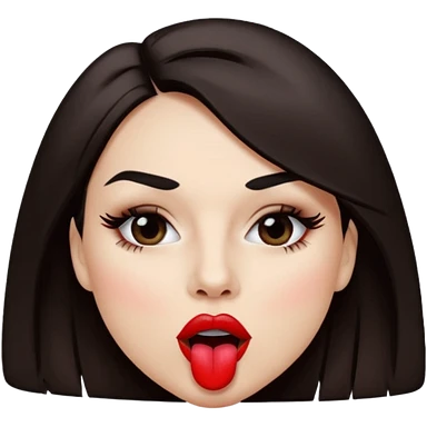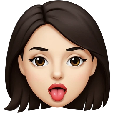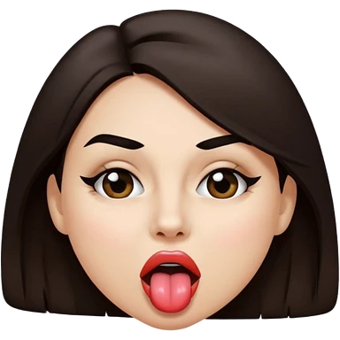 Beautiful woman with tan skin brown hair, brown eyes sticking her tongue out emoji