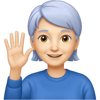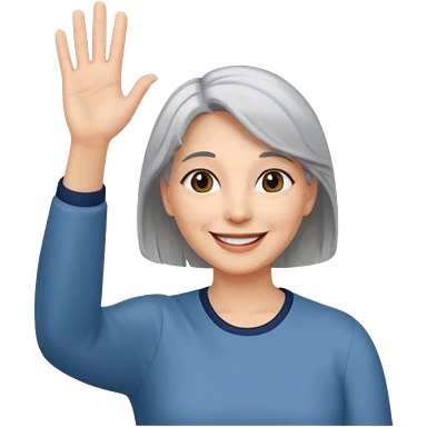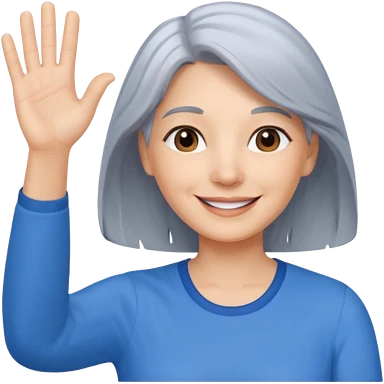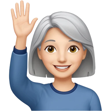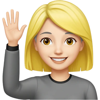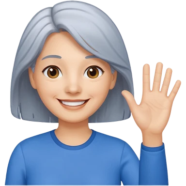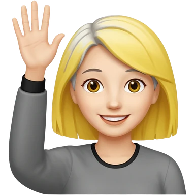 woman with gray and yellow hair smiling and waving her hand emoji | AI Emoji Generator