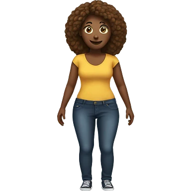 confident woman with curvy figure, large bust and hips, friendly expression emoji