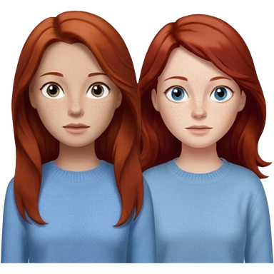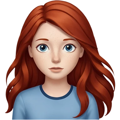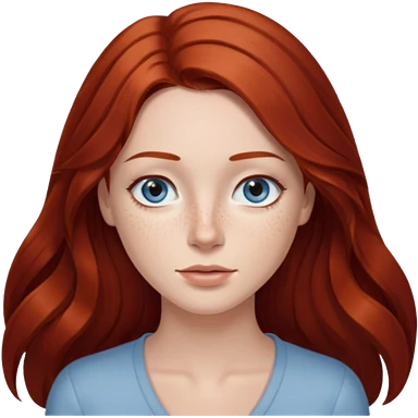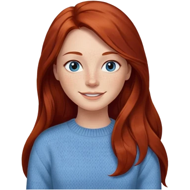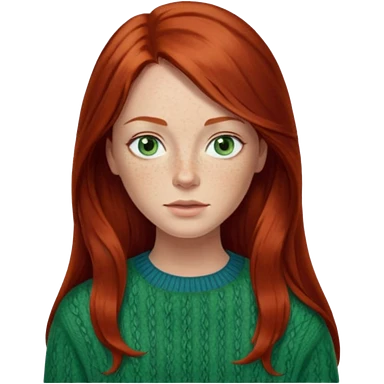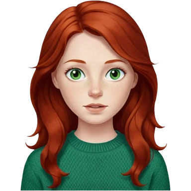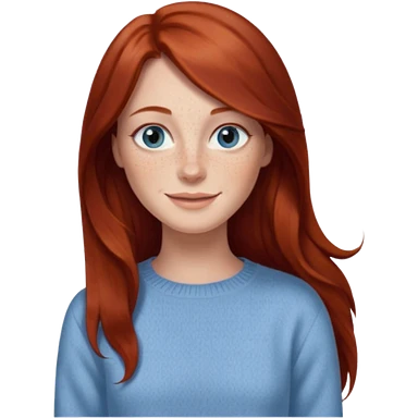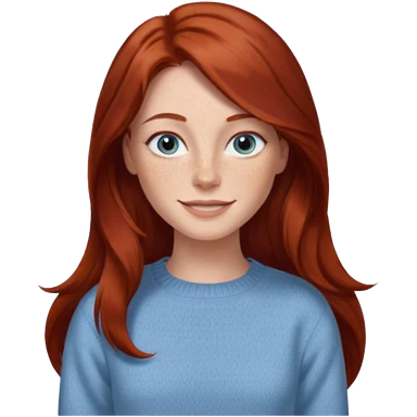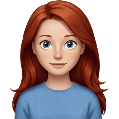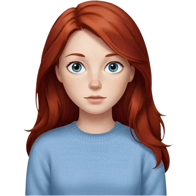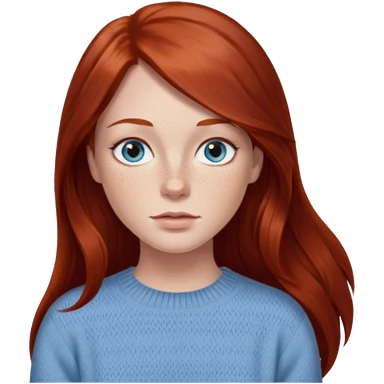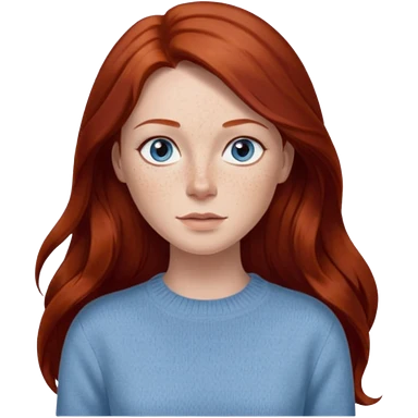 woman with long dark auburn red hair that is mostly straight but has slight waves to it. grey blue eyes. some freckles. wearing a Swedish style sweater that is neutral. the image on the right is closer emoji | AI Emoji Generator