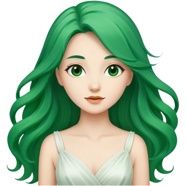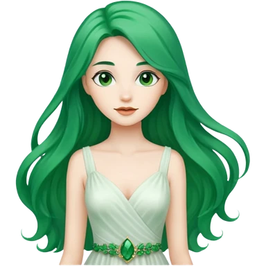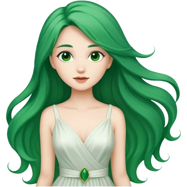 Woman with Long Emerald Hair – flowing green hair, elegant look, white dress emoji